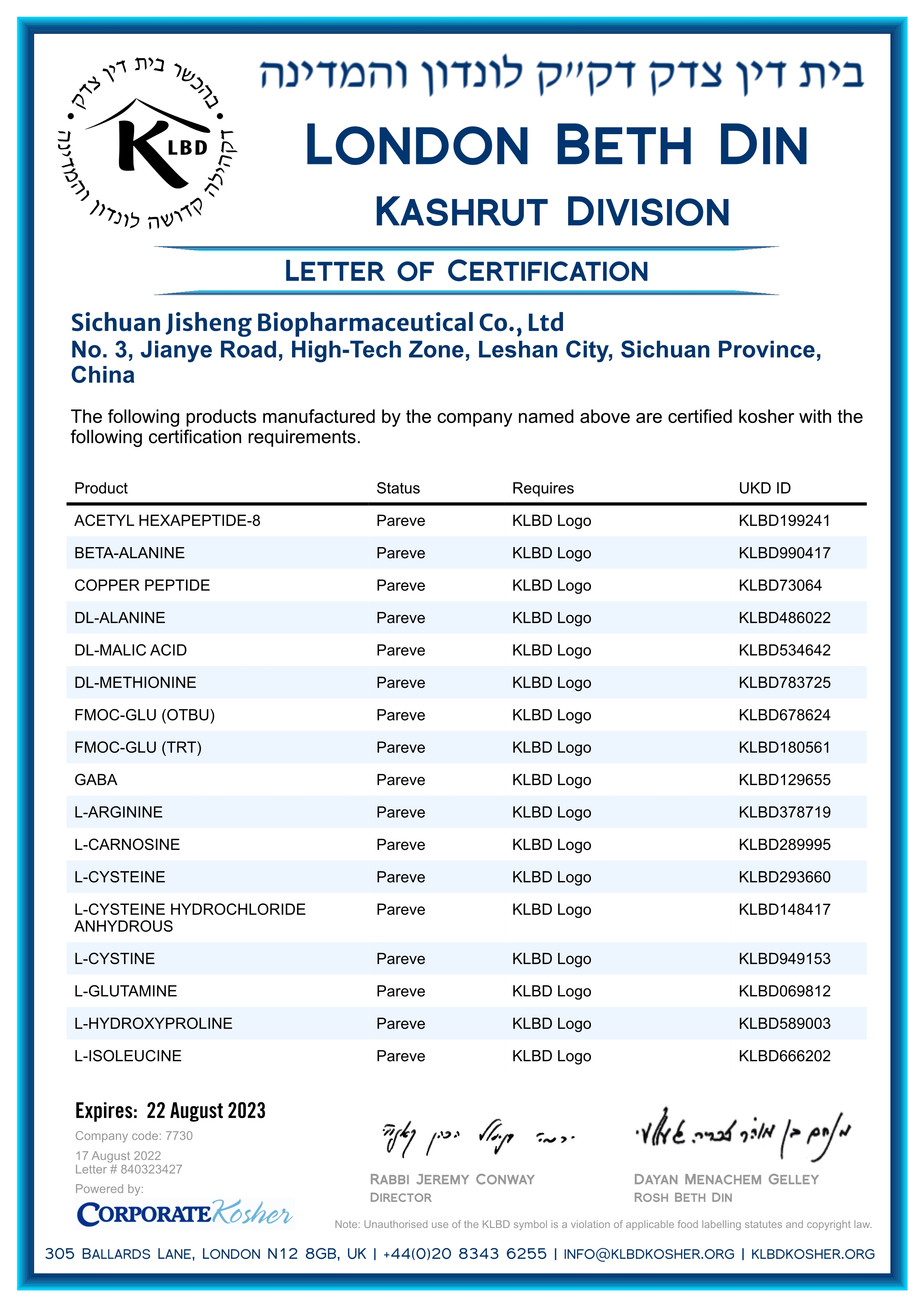 四川吉晟生物醫藥有限公司成立于2015年,位于四川樂山高新技術開發區,工廠占地面積6萬多平方米,是一家集產品研發、生產、銷售為一體的國家高新技術企業,通過了ISO9001、Kosher質量認證,2022年榮獲樂山市首家“瞪羚企業”。